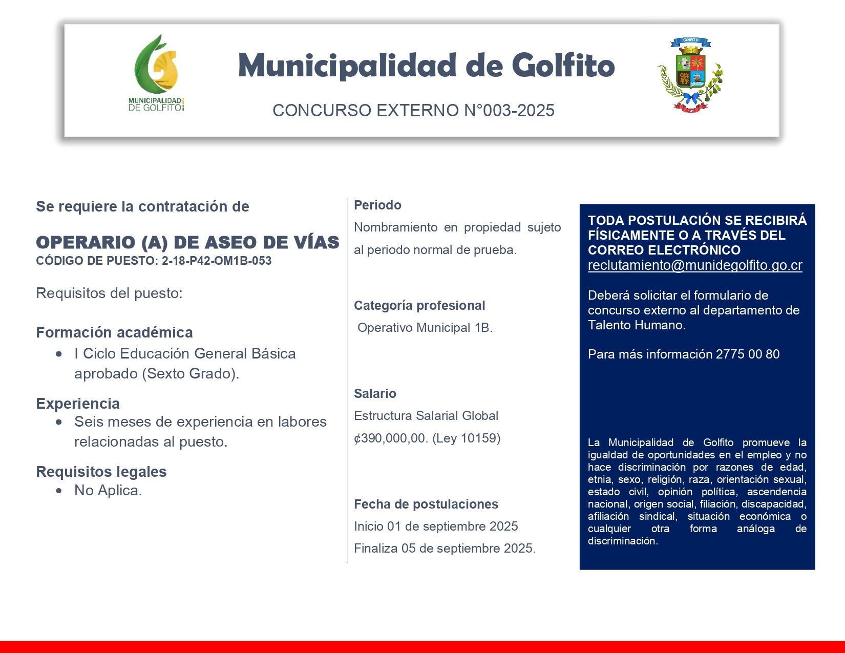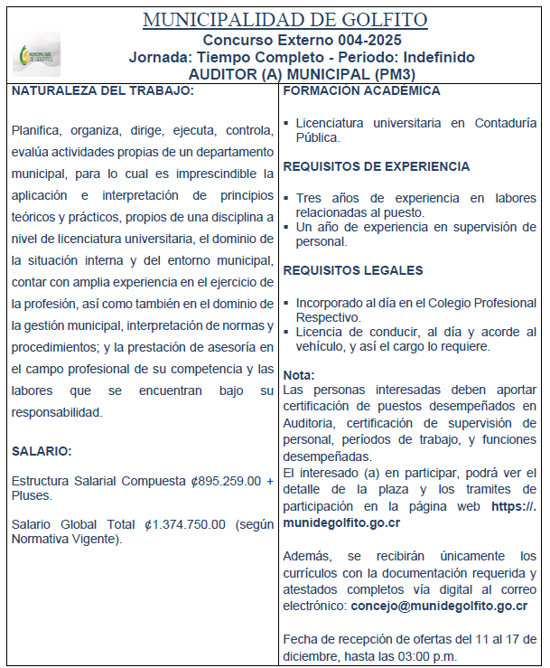 El horario municipal para atención del público es:
